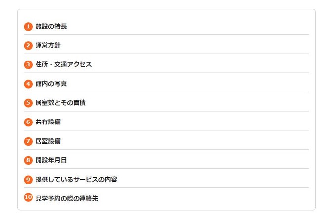 特徴2.施設を比較するときのポイントをつかめる