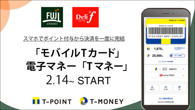 東京都・神奈川県を中心に食品スーパーマーケット等を展開する富士シティオ株式会社(本社:神奈川県横浜市、代表取締役社長:永田 俊雄、以下「富士シティオ」)と、株式会社Tポイント・ジャパン(本社:東京都渋谷区、代表取締役社長:北村和彦、以下「Tポイント・ジャパン」)、株式会社Tマネー(本社:東京都渋谷区、代表取締役社長:北村和彦、以下「Tマネー」)は、2022年2月14日(月)より、富士シティオが運営するフジ・デリド・プチマルシェ・フルハウス各店舗(一部店舗除く)にて、スマートフォンでご利用いただける「モバイルTカード」と電子マネー「Tマネー」サービスの提供を開始いたします。