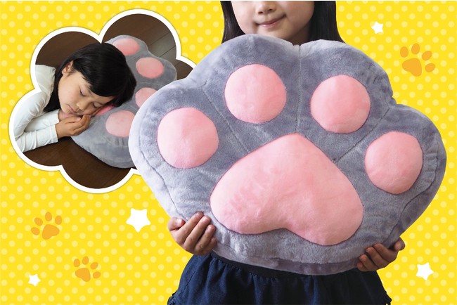 特徴:ぷにぷにで気持ち良い50cmの肉球クッション。ビッグサイズで抱き心地も抜群♪クッションにしたり、お昼寝の枕にしたり使い方も色々♪サバトラ猫・茶トラ猫・クロ猫柄の3色バリエーションで登場。