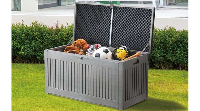 お庭で使用するガーデニング用品やお子さんのおもちゃ、灯油缶などの収納や、ごみ捨て前の保管場所として便利な大型のコンテナがデビューしました。工具不要で組み立て簡単。樹脂製なので、小型の収納庫に比べて約5kg程度と軽くて使いやすい商品です。