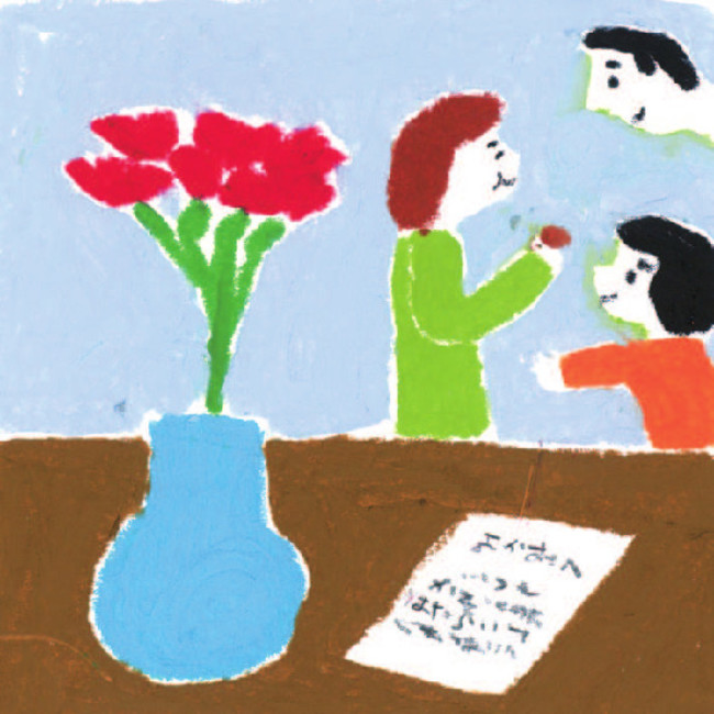 わたしのママはお花が大好きです。パパがママのたん生日やきねん日にお花をわたすので、わたしも母の日にわたそうと思っていました。わたしは小学校まででん車つう学しているので、えきで見る赤とピンクのカーネーションがいつも気になっていました。キラキラし、とてもきれいだったからです。お休みの日にパパと一しょに買いにいきました。お花のねだんが思っていたより高くてわたしのおこづかいでは足りませんでした。パパにお金をかしてもらいました。買おうと思っていた赤とピンクのカーネーションが買えてとてもうれしかったです。帰りにママの好きなマカロンも買いました。ピンク、ちゃ色、みどり、オレンジ、黄色、水色のマカロンがあってどれもおいしそうでした。家に帰ってから、ママにお手紙を書きました。ママはいつもあさ早くおきて、わたしのおべんとうを作ってくれます。ママにかんしゃの気もちがつたわるように書きました。ママがお家に帰ってきました。お花、お手紙、マカロンをわたすとママはとってもよろこんでくれました。お手紙とお花をキッチンにかざってくれました。家ぞくみんなでマカロンとケーキをたべました。お花を買った時にもらったひまわりのたねを一しょにうえました。まい日水やりをしてきれいにさいたらママにあげようと思いました。パパと一しょにママのよろこぶことを考えて、ママがたくさんよろこんでくれて、おいしいマカロンをたべられて楽しい1日になりました。