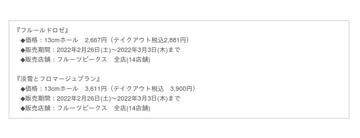 希少で人気の高い高級白いちご「淡雪」の優しい味わいに合わせ、甘味を抑えたくちどけの良いなめらかなレアチーズムースを使用しています。ムースの中にはレアチーズの味わいと相性抜群のフルーツピークス自家製いちごソースも入っており、いちごの様々な味わいを飽きることなくお楽しみいただける、フルーツ専門店ならではのタルトに仕上げています。
