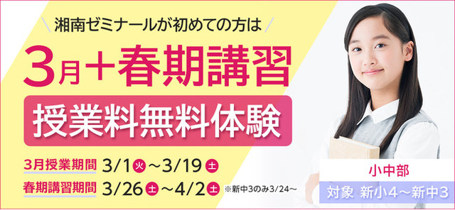 湘南ゼミナール小中部では3月授業+春期講習授業料無料体験を好評受付中!