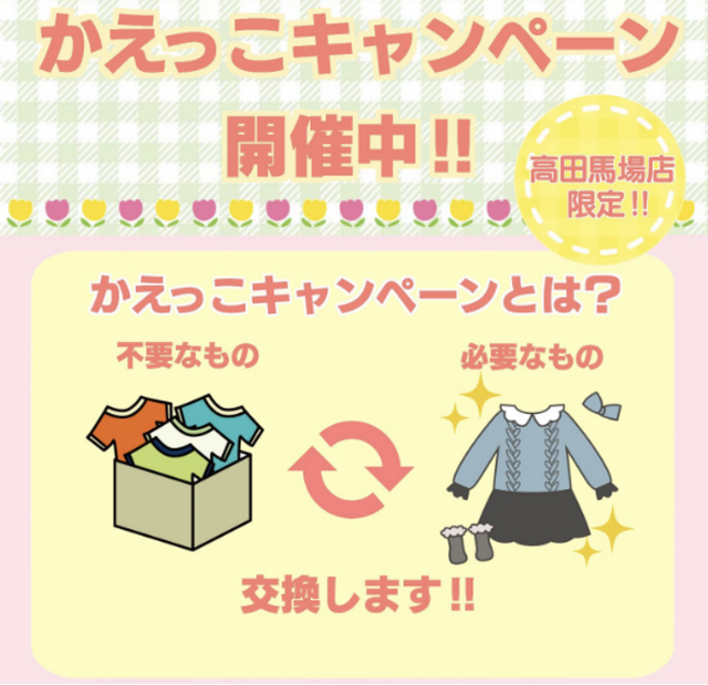 ・交換が不要の方には、ママズスマイル高田馬場店で利用可能な500円クーポンをお渡し致します。(1着につきクーポン1枚となります)