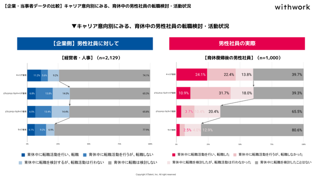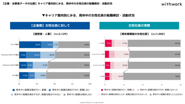 育休中の転職検討比率は企業側が想像するほどキャリア意向別で大差はない