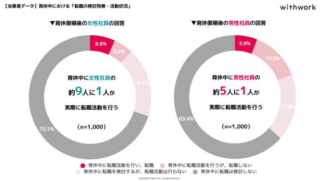 育休中に転職活動を行った人は、女性社員で12%、男性社員で19%