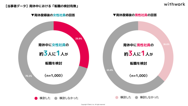 2. 育休中の転職検討率は女性30%、男性37%。男性の動きが活発