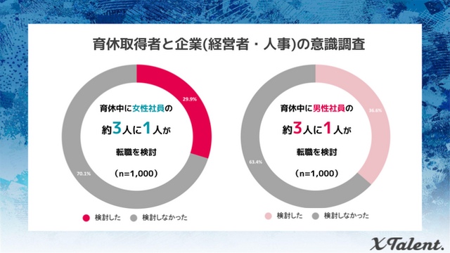 育休取得経験のある男女の、約3人に1人が育休中に転職を検討