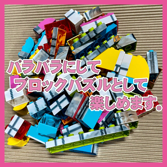 フォトブロックはブロックそれぞれに印刷しておりますので、遊んでいたブロックようにバラバラにすることができます。少し大きくなったお子様にも通常のパズルより難しいブロックパズルとして新しい遊び方ができ大人も一緒に楽しめます。