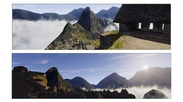 コンテンツでは、太陽の光の差し込み方や影の動きなどにより時間を変化させることで、マチュピチュ遺跡が太陽の動きに密接なかかわりがあることを紹介します。また、夜間は閉鎖されて実際の遺跡では見ることができない夜のマチュピチュ遺跡を体験することができます。