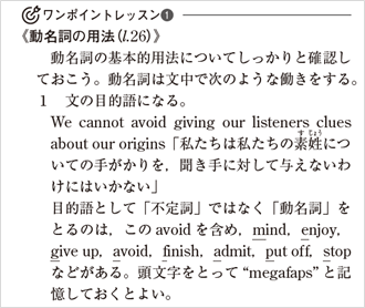 ・解答編の「ワンポイントレッスン」では、英文読解に不可欠な重要構文や間違えやすい語法を中心に解説しています。