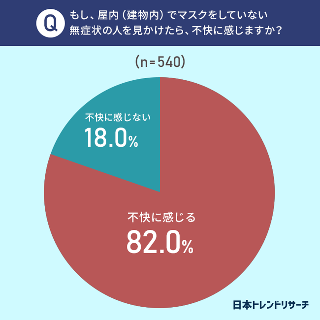 屋内でもマスクをしていない方を見かけたら「不快に感じる」という方が多いようです。