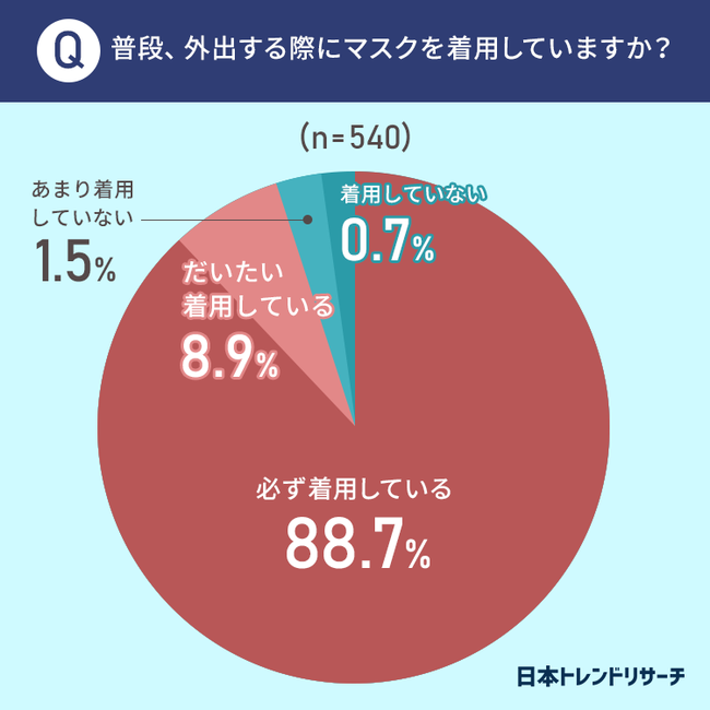 日本トレンドリサーチ(運営会社:株式会社NEXER)は、「マスク着用についてのアンケート」を実施し、結果をサイト内にて公開したので紹介します。