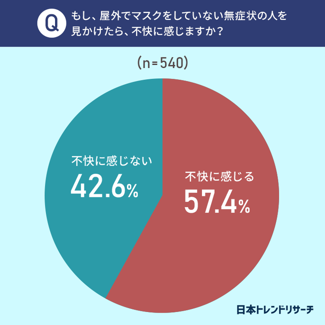 続いて、もしもマスクをしていない人を見かけたら、不快に感じるかについて聞きました。