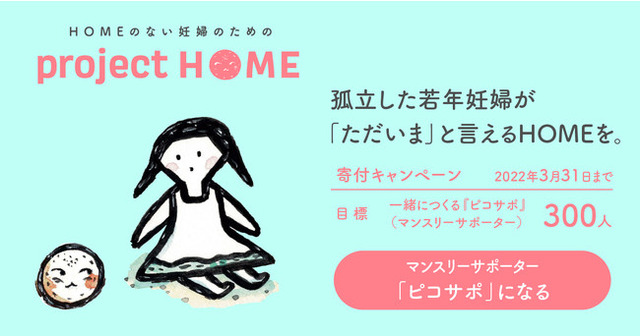 「project HOME」事業の運営を今後も安定的に行い、利用者の必要に合わせて事業をさらに拡充していくための仲間や資金を確保するため、ピッコラーレではこのたび、活動に共感し、継続的に支援してくれるマンスリーサポーター「ピコサポ」を300人募集するキャンペーンを3月31日まで実施します。また、3月9日には、元厚生労働事務次官であり、一般社団法人若草プロジェクト代表呼びかけ人の村木厚子氏と、ピッコラーレ代表の中島かおりによるオンライントークイベントを開催します。