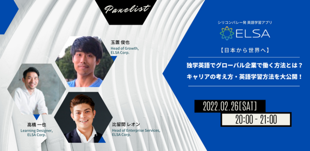 シリコンバレー発の英語発音矯正アプリ "ELSA Speak" を開発する ELSA Corp. (CEO: Vu Van) は、国内の中学生・高校生・大学生や、その保護者を対象とした、「日本国内の教育でどのように英語を勉強し、どのようにしてグローバルに活躍する鍵を得たのか」をテーマとしたイベントを、2022年2月26日(土) 20:00 - 21:00 に開催致します!