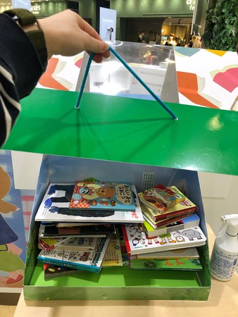 ひろばの横には「絵本のリサイクルボックス」を設置し、ご自宅で読まなくなった絵本を回収しています。2022年2月現在、100冊以上の絵本が集まっており、消毒後に豊島区内の各施設に寄贈予定です。
