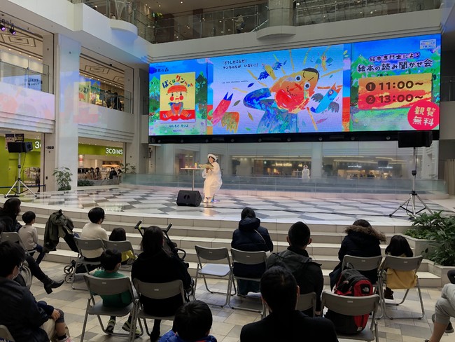 土・日・祝日(不定期)には噴水広場(アルパB1)にてご家族で楽しめるイベントも開催中!「絵本の読み聞かせ会」では628インチの大型ビジョンに映し出される絵本を眺めながら、絵本専門士・あべえみこさんの表情豊かな読み聞かせを楽しむことができます。また、「工作教室」では、本イベントオリジナル絵本の作者、絵本作家・横山寛多さんによるお絵描き教室などに参加できます。絵本の内容、工作教室の内容は各日異なるため、何度参加しても親子で楽しめるイベントです!