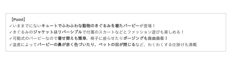 【キュートアップ!きぐるみバービー 詳細】