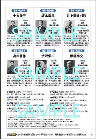 織田信長や坂本竜馬などの「歴史ヒーロー」のモデル以外にも、ゲームに登場する「物件」やカードのモチーフになった歴史人物などについても紹介しています。