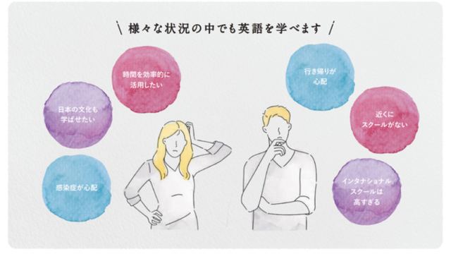 インターナショナルスクールに通うのは、容易なことではありません。「近くにインターナショナルスクールがない」「金額が高すぎる」「今在籍している学校をやめたくない」「忙しすぎて英語を学ぶ時間がない」「今やりたいことと教育環境が合わない」など、その理由はさまざまです。