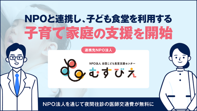 株式会社ノーススター(本社:東京都中央区、代表取締役社長:田北 浩大、以下「ノーススター」)は、認定NPO法人全国こども食堂支援センター・むすびえと広報連携し、こども食堂をご利用のご家庭に向けて、医師の交通費をご負担頂かずに夜間往診をご利用いただけるプランを開始いたします。