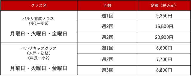 ≪バルサ育成クラス・バルサキッズクラス時間割≫