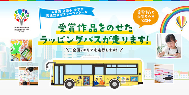 受賞作品がラッピングされたバスが各地を走行!「子どもたちの交通安全への願いをのせたバス」に