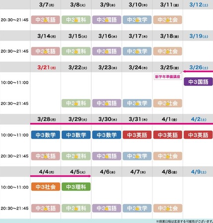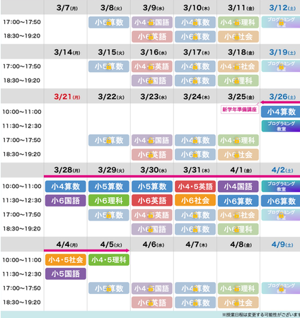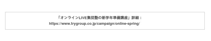 株式会社トライグループ(本社:東京都千代田区、代表取締役:平田 友里恵)は、2022年3月14日(月)~4月5日(火)の23日間、新小4年生~新高3年生を対象に「自信を持って4月からのスタートを切って欲しい」といった思いから、新学年の学習をする上で今学んでおくべき重要なエッセンスだけを詰め込んだ“オンラインLIVE集団塾”の「新学年準備講座」を“完全無料”で開講いたします。