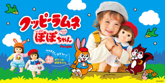 お世話ブランケットのついたお人形のセット「クッピーラムネぽぽちゃん」と、着せ替え遊びにぴったりの洋服のセット「ぽぽちゃん専用クッピーラムネコーデセット」の2アイテムで展開します。