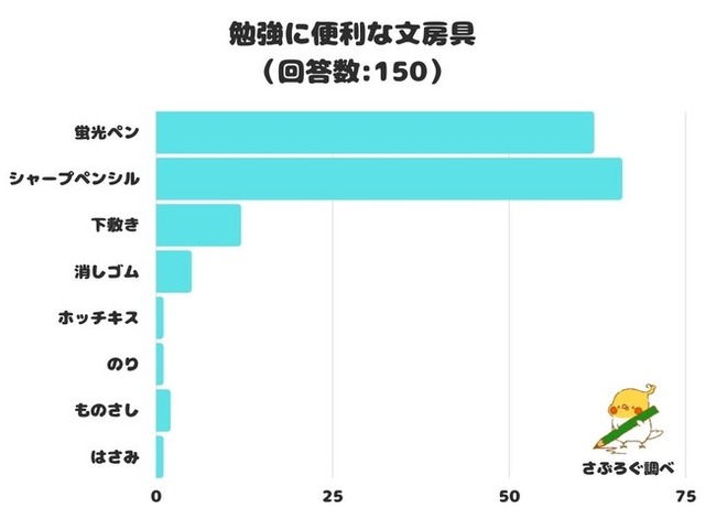 勉強に便利な文房具をアンケートにて調査したところ、1位は「シャープペンシル」でした。