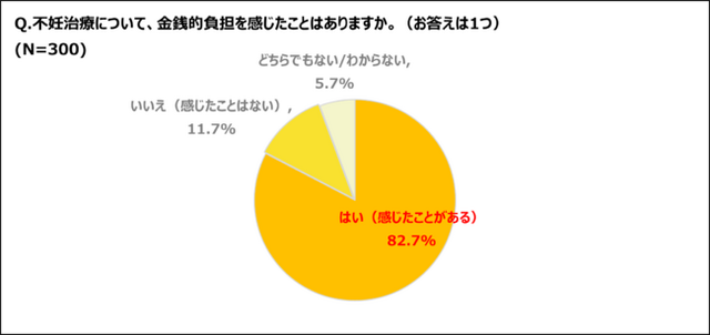 不妊治療において82.7%の人が金銭的負担を感じたことがあると回答しました。