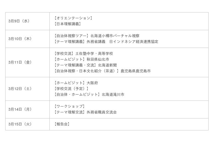 対象:インドネシアの高校生・大学生・社会人 約100名(予定)