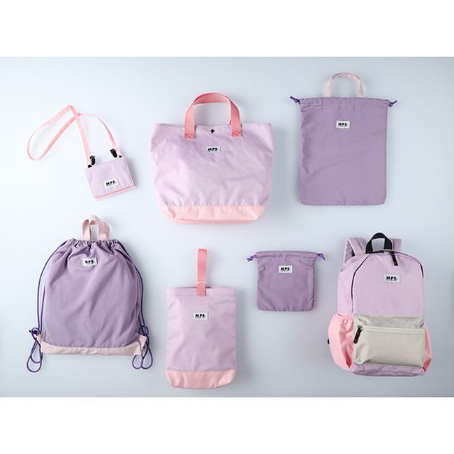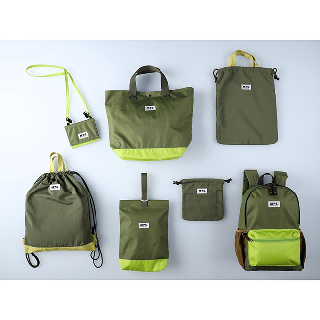 アイテムは5種類で、荷物が沢山入る大容量10リットルのリュック、A4サイズが入るトートバッグとシューズバッグのセット、用途に合わせて使い分けが可能な巾着セット、着替えが入るナップザック、ショルダーとしても、腰につけても使用できる2WAY仕様のマルチポーチを展開いたします。