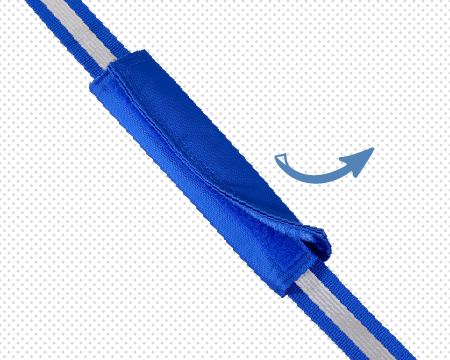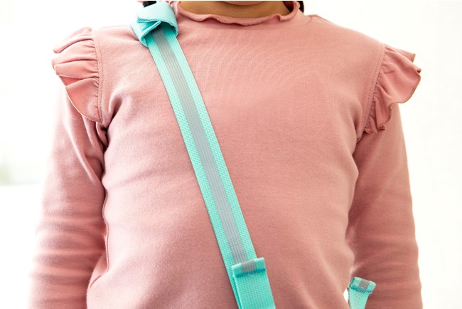 車のライトなどに反射して光る、反射材付きのベルト。暗いところでも目立つので交通安全に役立ちます。