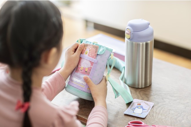 ボトルカバーの「お気に入りポケット」は、お好きなカードなどを差し込んでお使いいただけます。好きなキャラクターのカードを入れて、自分だけのボトルにアップデート。お子さまの「好きなものに囲まれたい!」という気持ちを満たします。もちろん、名札入れ(お名前カード付属)としてもお使いいただけます。