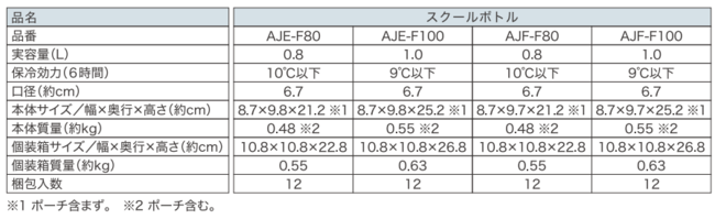 ※保冷効力とは、室温20℃±2℃において製品に冷水をせんユニット下端まで満たし、縦置きにした状態で水温が4℃±1℃の時から6時間放置した場合におけるその水の温度です。