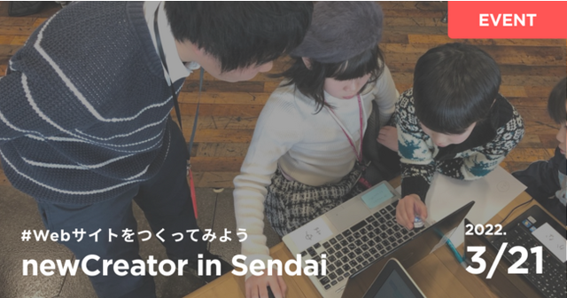"newCreator in Sendai" は、小学4年生~中学3年生の児童・生徒を対象とした、1日でウェブサイトの企画と制作が体験できるワークショップです。