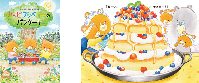 人気絵本シリーズ「くまのがっこう」のあいはらひろゆきさんと、『いちばんしあわせなおくりもの』で第7回リブロ絵本大賞受賞の宮野聡子さんの新作絵本『パッピプッペポーのパンケーキ』。