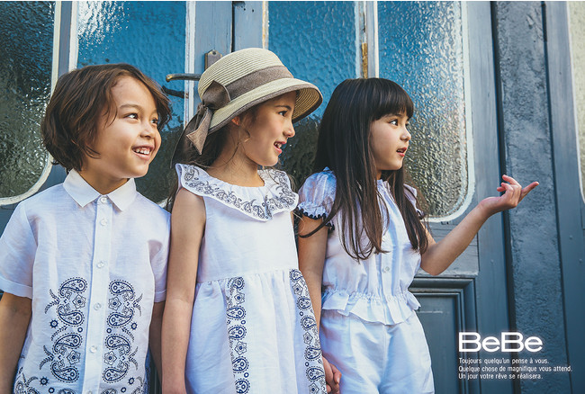 「LOVE & Moderne」をコンセプトに「少しおませで、生意気なヨーロピアンカジュアル」を提案している、カンパニーネームであるBeBe。創業以来、株式会社ベベとしてのもの作りを継承する代表ブランドです。時代や流行を捉えたベーシックながらワンポイントの遊び心やモノトーンカラーを中心とした展開、大人服を子供に落とし込んだデザインが特徴的です。