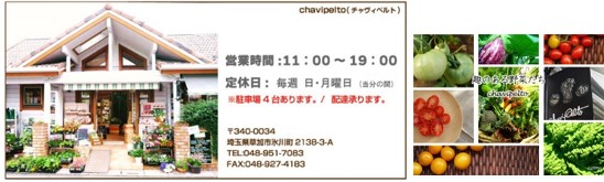 「Chavipelto(チャヴィペルト)」の野菜:草加市で何代も続く農家が安心でおいしい野菜を栽培、販売しているお店。年間約70種類の野菜を育てている中から厳選して販売。