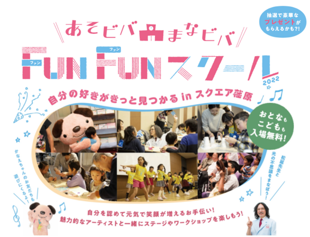 FUNFUNスクール実行委員会(代表:柿沢美貴)は、子ども達の自己肯定感を育み、大人達には子ども達の無限の可能性に気づくリアルイベント、『あそビバ まなビバ FUNFUNスクール in スクエア荏原』を、3月13日(日)10時よりスクエア荏原(品川区荏原4-5-28)にて開催いたします。