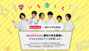 朝日学生新聞社は、東大クイズ王・伊沢拓司さん率いるQuizKnockのメンバーが出演する「QuizKnock×朝日小学生新聞」のコラボ動画を2022年3月7日にリリースしました。