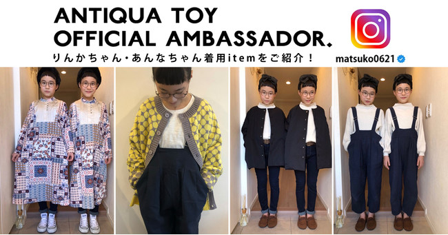 テレビ出演や本の出版など、マルチに活躍する双子のりんちゃんあんちゃんとantiqua toy(アンティカ トイ)とのコラボアイテムに新作が!お母様であるmatsuko様の「こんなアイテムがあったら嬉しい」を元に何度も試行錯誤を重ね、拘りのサロペットが遂に完成。 デザインだけでなく、子どもにとっての着やすさや着心地、お洗濯のしやすさなどお母様目線からも嬉しいポイントに拘った特別な一着です。さらに今だけ!条件を満たしたお客様には、ここでしか手に入らないコラボしおりをプレゼント!
