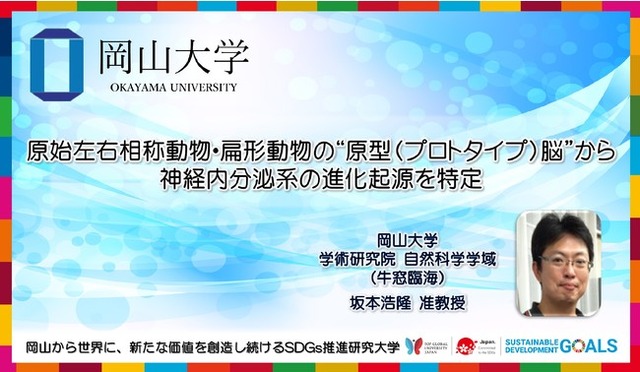 国立大学法人岡山大学(本部:岡山市北区、学長:槇野博史)学術研究院自然科学学域(牛窓臨海)の坂本浩隆准教授(神経内分泌学)と、島根大学、近畿大学、三重大学、金沢大学、ニュージーランド・オークランド大学/オタゴ大学、英国オックスフォード大学の国際研究グループは、脊椎動物の神経内分泌系の“要”である下垂体後葉ホルモン、「バソプレシン/オキシトシン」の同族ペプチドを原始左右相称動物の扁形動物ヒラムシ(海産プラナリアの仲間)から発見しました。