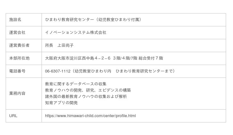 そこで、新時代に即した最善の教育方法を模索し、教育に関するデータベースとエビデンスを確立するために、幼児教室ひまわり付属の「ひまわり教育研究センター」を設立しました。これにより、一層確信を持って保護者の方々へ「子供を賢く育てる」「無から有を生み出す学力」を培う教育法をお伝えし、新時代の教育の未来を拓いていきたいと考えています。