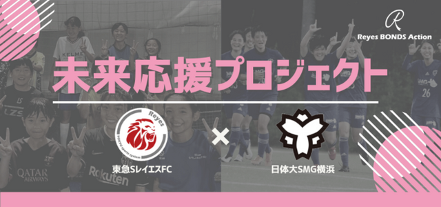 この度、横浜市における女子サッカーの環境向上や活性化を目的に、横浜市青葉区に拠点を置く『東急SレイエスFC』と青葉区で活動するなでしこリーグ所属のチーム『日体大SMG横浜』が連携し、未来応援プロジェクトをとして「なでしこリーグ前座試合」と「YOKOHAMAガールズサッカークリニック」を開催いたします。