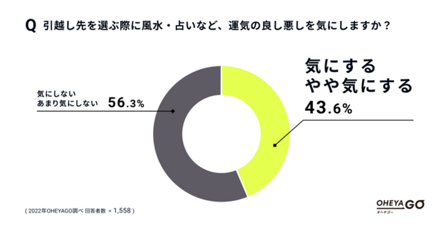 テクノロジーで不動産の賃貸取引をなめらかにするイタンジ株式会社は、スマートフォン上でお部屋探し、内見予約、入居申込みまでが完結する、セルフ内見型賃貸サイト「OHEYAGO(オヘヤゴー)」( https://oheyago.jp/ )のTwitterアカウントのフォロワー1,558人に対し実施した、引越しと風水・縁起に関する意識調査の結果を発表します。