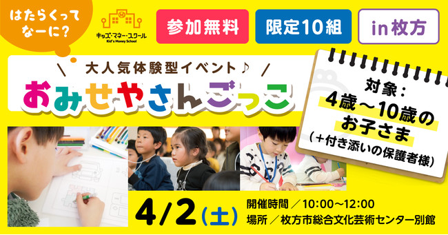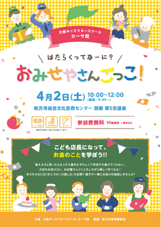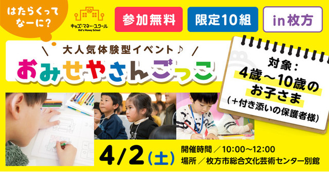 カーサ・プロジェクト株式会社(本社:東京都渋谷区、代表取締役:縣 桂一郎、以下 カーサプロジェクト)は、お金について親子で学べる体験型イベントを、4月2日(土)に枚方市で開催します。