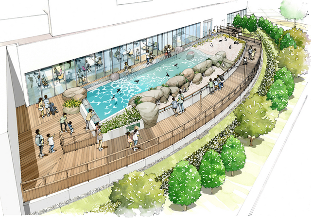 新施設では、海や生きものとの「つながり」を体現する存在として、ケープペンギンをフィーチャーしました。ケープペンギンは、かわいらしい見た目や愛くるしいしぐさから、老若男女問わず親しみを持ちやすく、不動の人気を誇る生きものであること、家族ごとに巣で暮らし、夫婦で協力して子育てをするなど、人との共通点も多くあることから、「つながり」を感じやすい存在であると考えます。